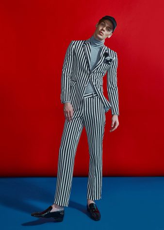Black and white striped suit trousers