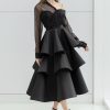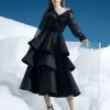 Layered ruffled A-line skirt in black