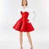Pleated long balloon sleeve sharp collar shirt in white