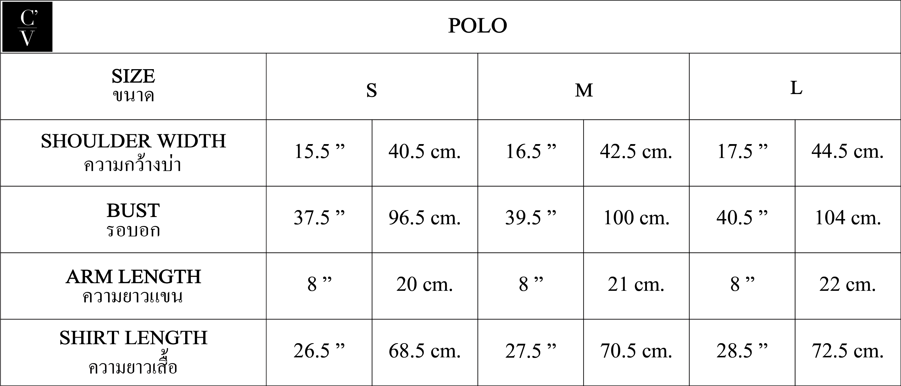 S, M, L